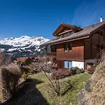 Chalet Alpenrebe, som ligger 600 m fra Wengen togstation, har udsigt over bjerg.